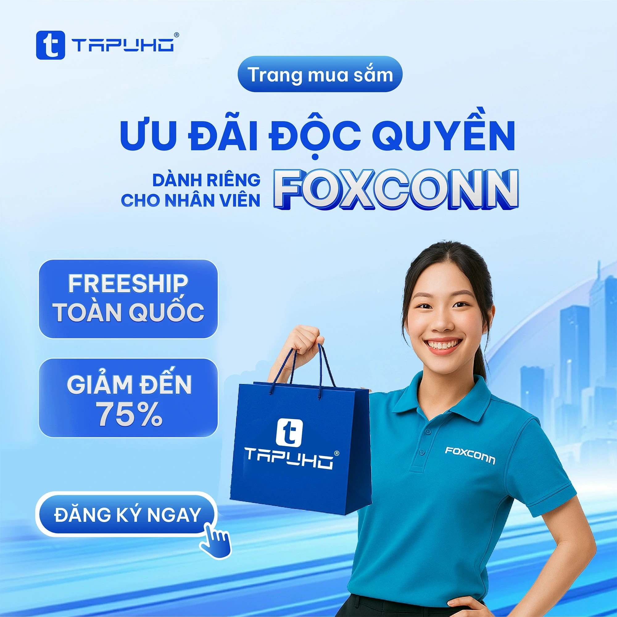 Trang foxconn.tapuho.com được phát triển dành riêng cho các đối tác chiến lược, khởi đầu từ Foxconn – Tập đoàn công nghệ hàng đầu thế giới. Tại đây, đội ngũ nhân sự Foxconn sẽ được trải nghiệm hệ sinh thái sản phẩm chính hãng TAPUHO với ưu đãi độc quyền lên đến 80%, cùng chính sách bảo hành minh bạch và dịch vụ giao hàng tận nơi.