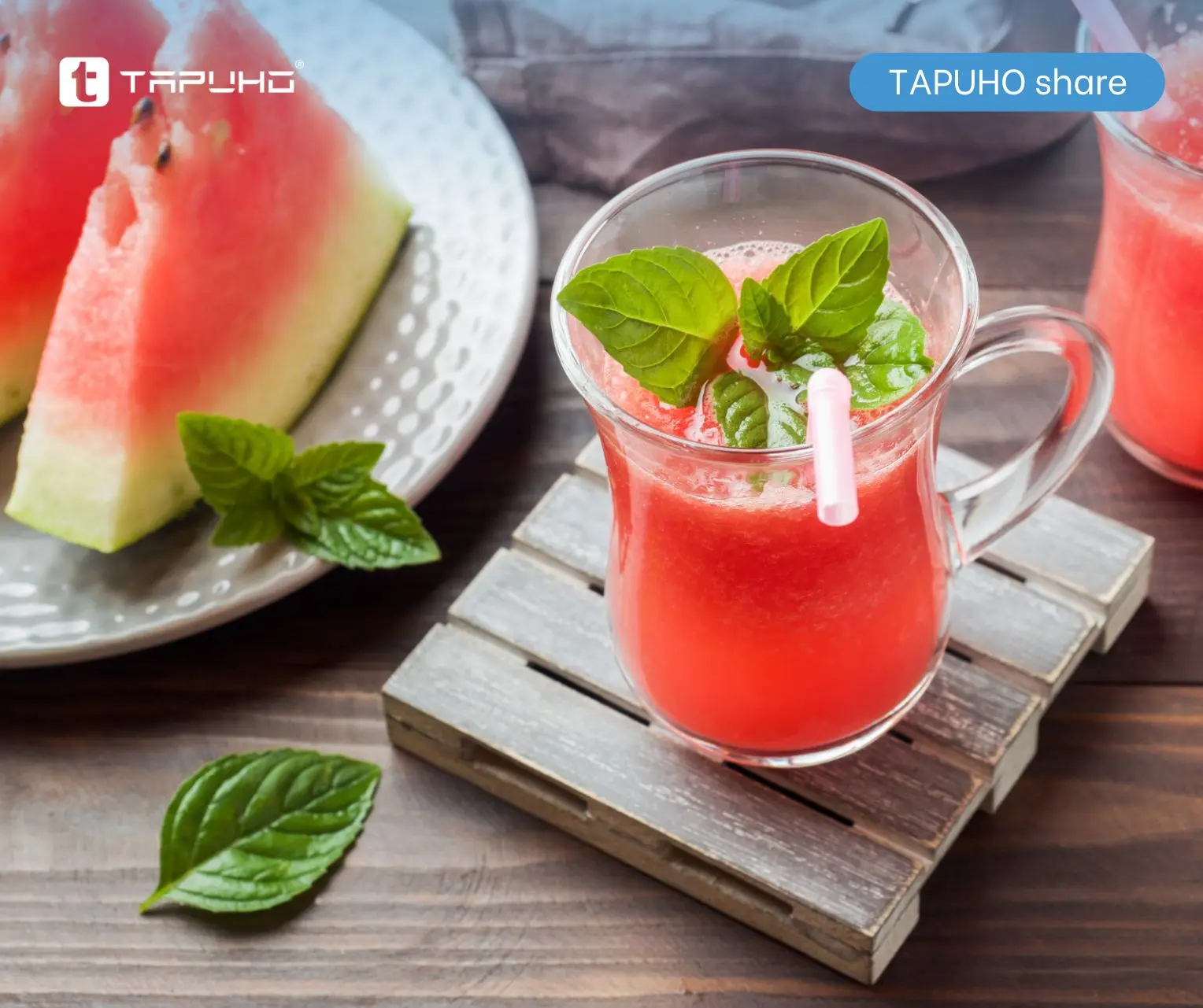 Nước ép dưa hấu kết hợp cùng bạc hà không chỉ giúp giải khát tức thì mà còn bổ sung lượng nước dồi dào cho cơ thể, hỗ trợ thanh nhiệt, làm mát gan, giảm căng thẳng và mệt mỏi. Dưa hấu giàu vitamin A, C cùng các chất chống oxy hóa, tốt cho da và hệ miễn dịch. Trong khi đó, bạc hà mang đến cảm giác sảng khoái, hỗ trợ tiêu hóa và làm dịu dạ dày. Đây là loại thức uống lý tưởng cho những ngày hè nóng bức.