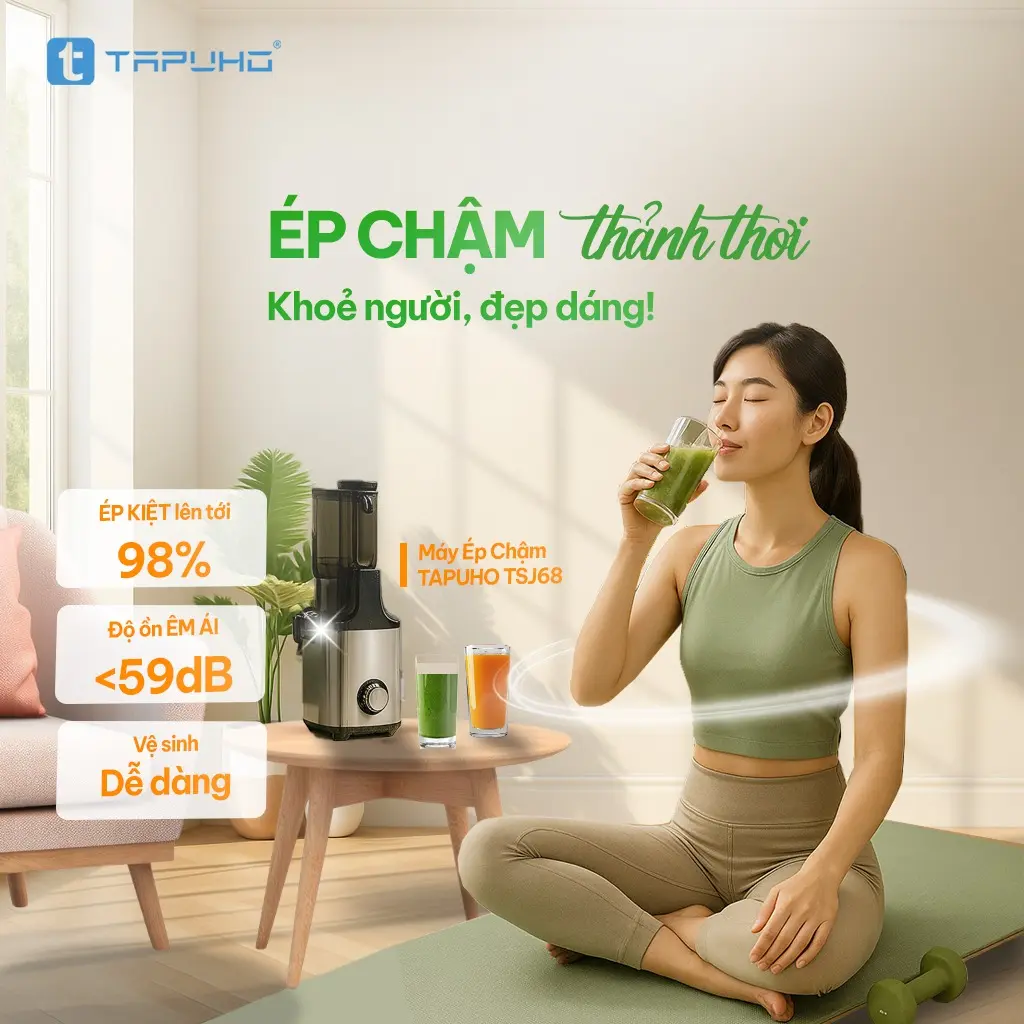 Qua bài viết này, bạn đã có cái nhìn toàn diện về nước ép detox từ lợi ích cho sức khỏe và làn da đến 11+ công thức dễ làm bằng máy ép chậm. Những ly nước ép tươi mát không chỉ giúp thanh lọc cơ thể, hỗ trợ giảm cân, cải thiện tiêu hóa, mà còn giữ trọn dưỡng chất, mang lại làn da rạng rỡ. Đặc biệt, máy ép chậm Tapuho chính là “trợ thủ” để bạn tạo nên những ly nước ép mịn ngon, giàu enzyme và vitamin tự nhiên, không bị phá vỡ bởi nhiệt. Nếu bạn mong muốn xây dựng lối sống lành mạnh, đẹp từ bên trong và tận hưởng nhịp sống chậm rãi hơn, hãy bắt đầu từ thói quen nhỏ mỗi ngày với một ly nước ép detox.