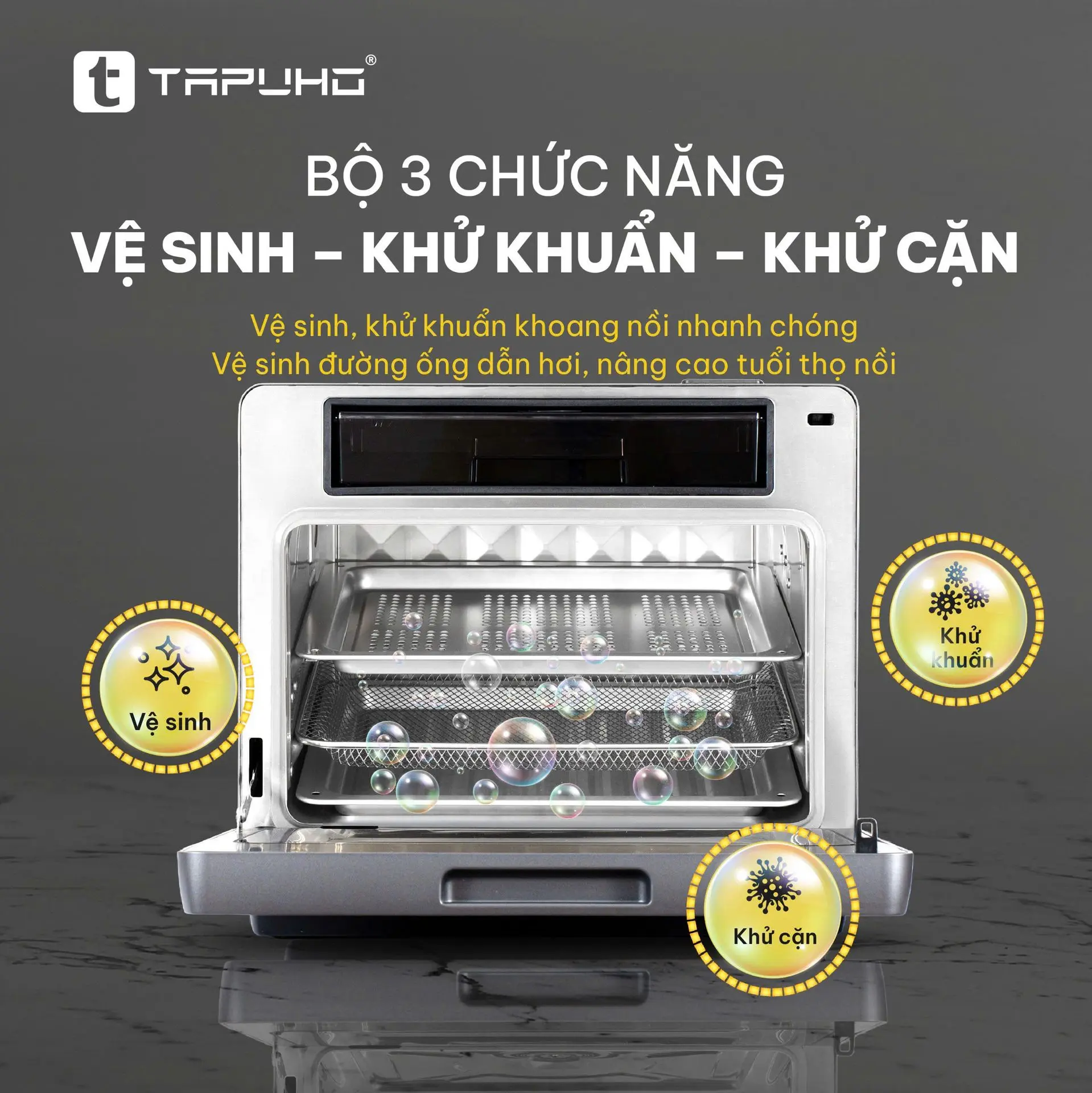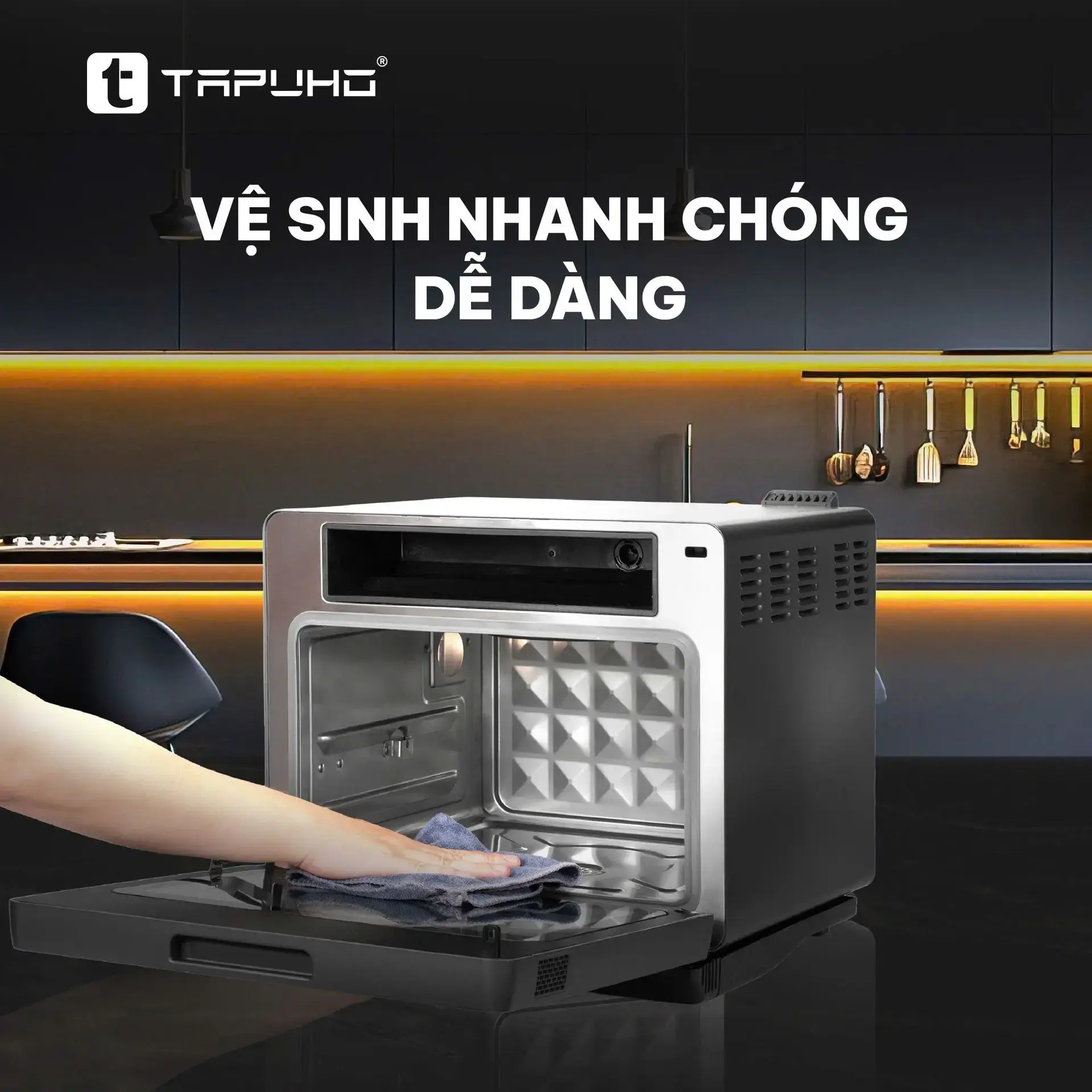 Dưới đây là các bước vệ sinh chi tiết, từ chọn chế độ làm sạch, hoàn tất chu trình, lau khoang nấu đến vệ sinh bên ngoài máy, giúp bạn dễ dàng giữ cho TAPUHO luôn sạch như mới.