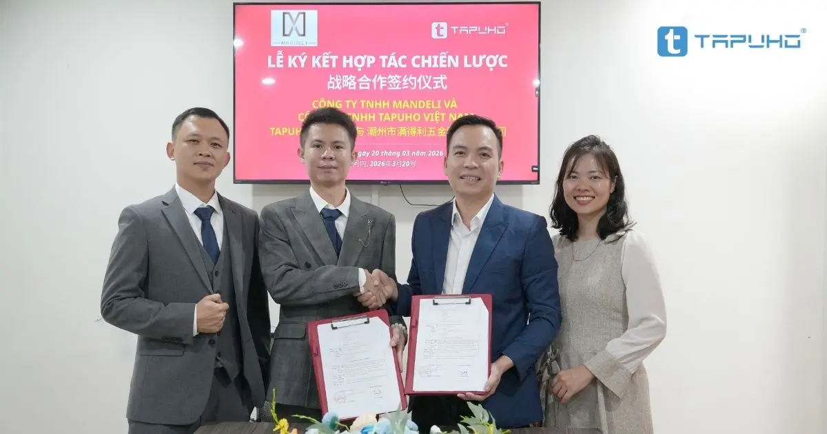TAPUHO Việt Nam chính thức công bố việc thiết lập quan hệ hợp tác chiến lược với Chaozhou Mandeli Hardware Products Co., Ltd., đánh dấu bước tiến quan trọng trong chiến lược mở rộng chuỗi cung ứng và nâng cao năng lực phát triển sản phẩm trên quy mô quốc tế.
